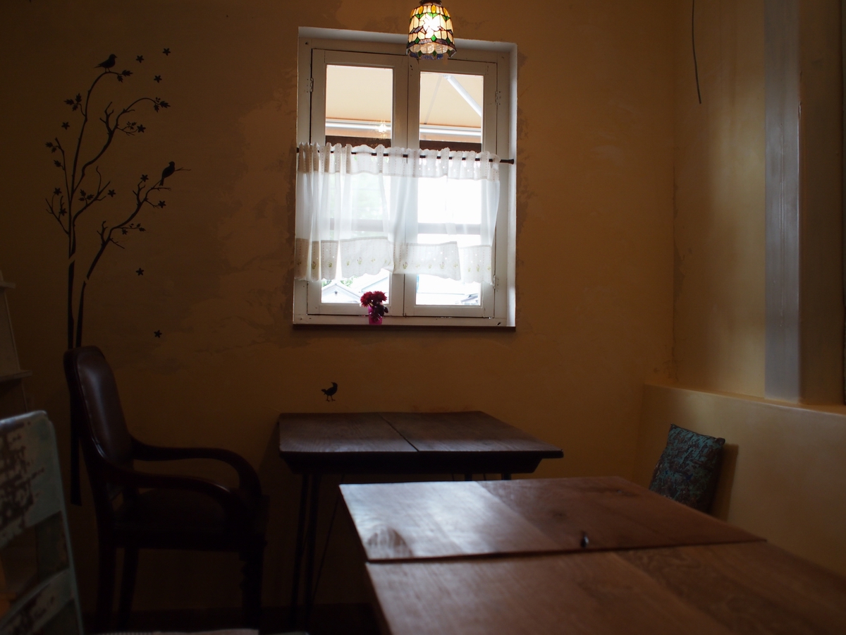 お店に入るドアのノブがなぜかドアの中央についているのが面白い。