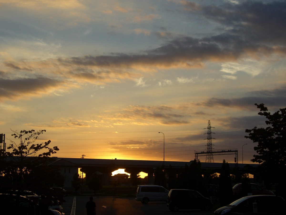 舞台を片付け、打ち上げに向かおうと外に出ると綺麗な夕焼けでした。