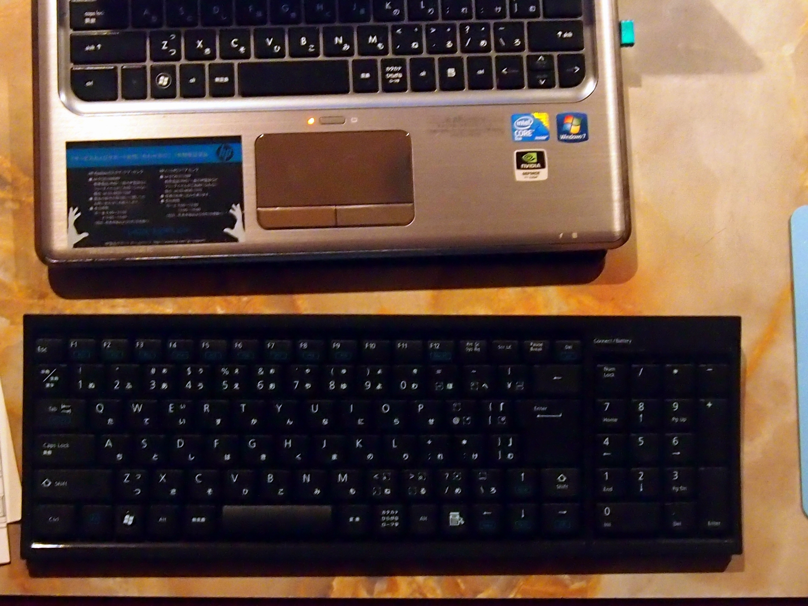 このキーボード、ワイヤレス接続なんです。