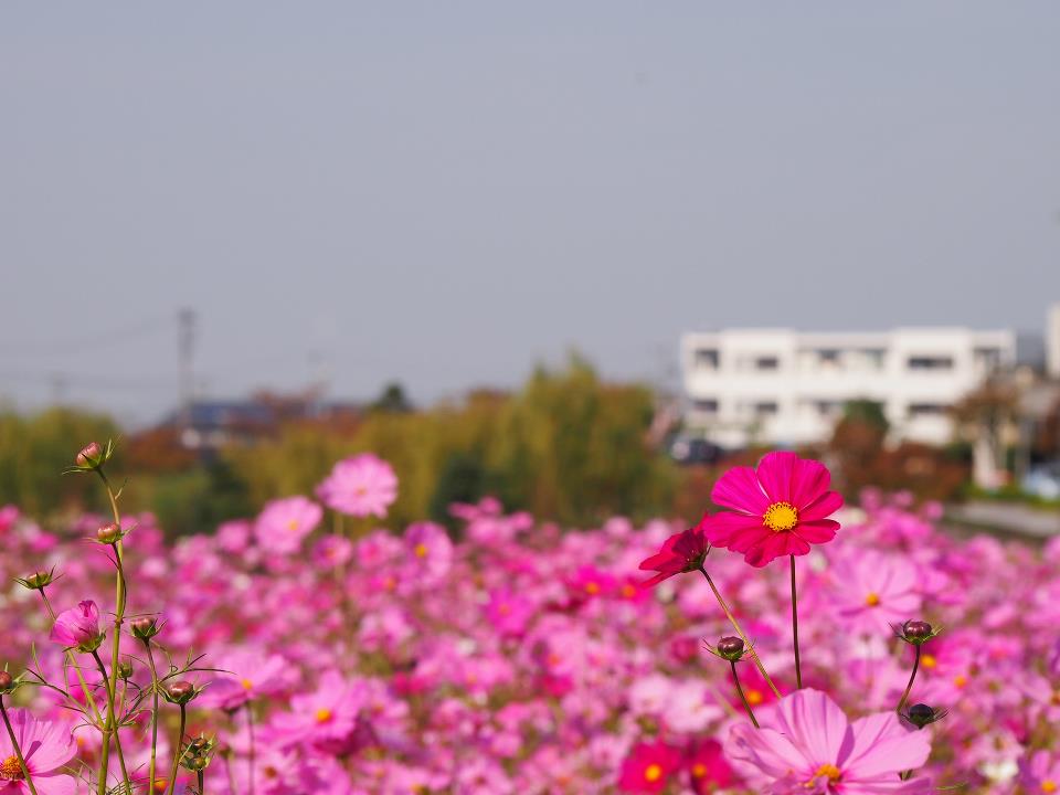幸田町民会館の前には地元の方が育てたコスモスが見頃です。
