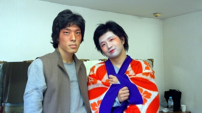 <共演者の一人、にゃん四郎役の上山太朗くんと>