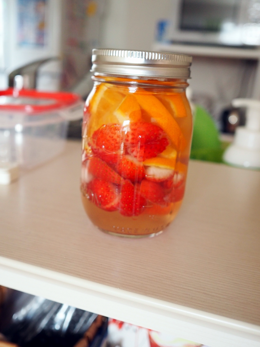 これにカットしたフルーツとお水を入れて冷蔵庫で4~6時間ほど冷やします。