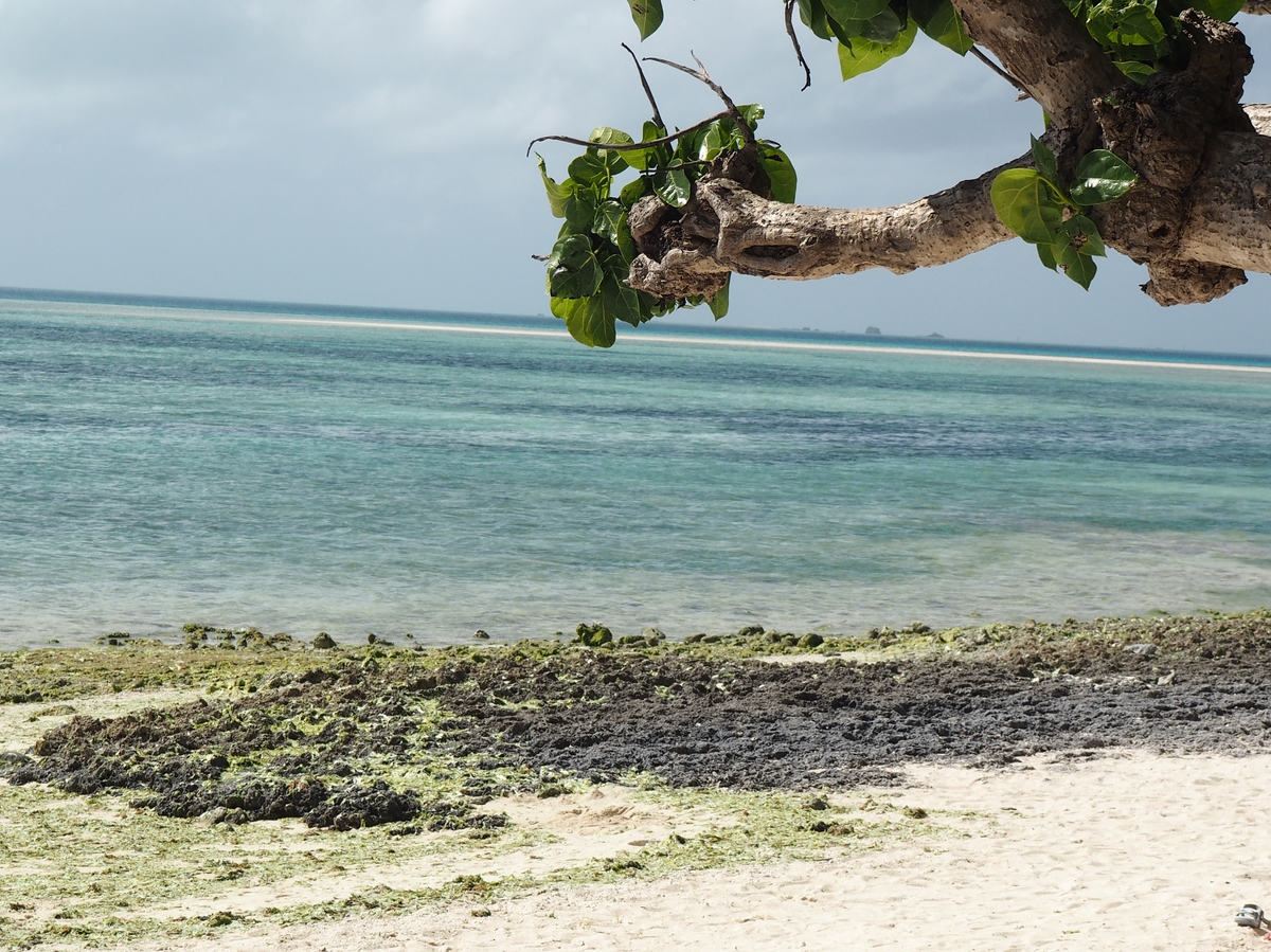 海の向こうに見えるのは多分、昨日行った竹富島だと思われます。