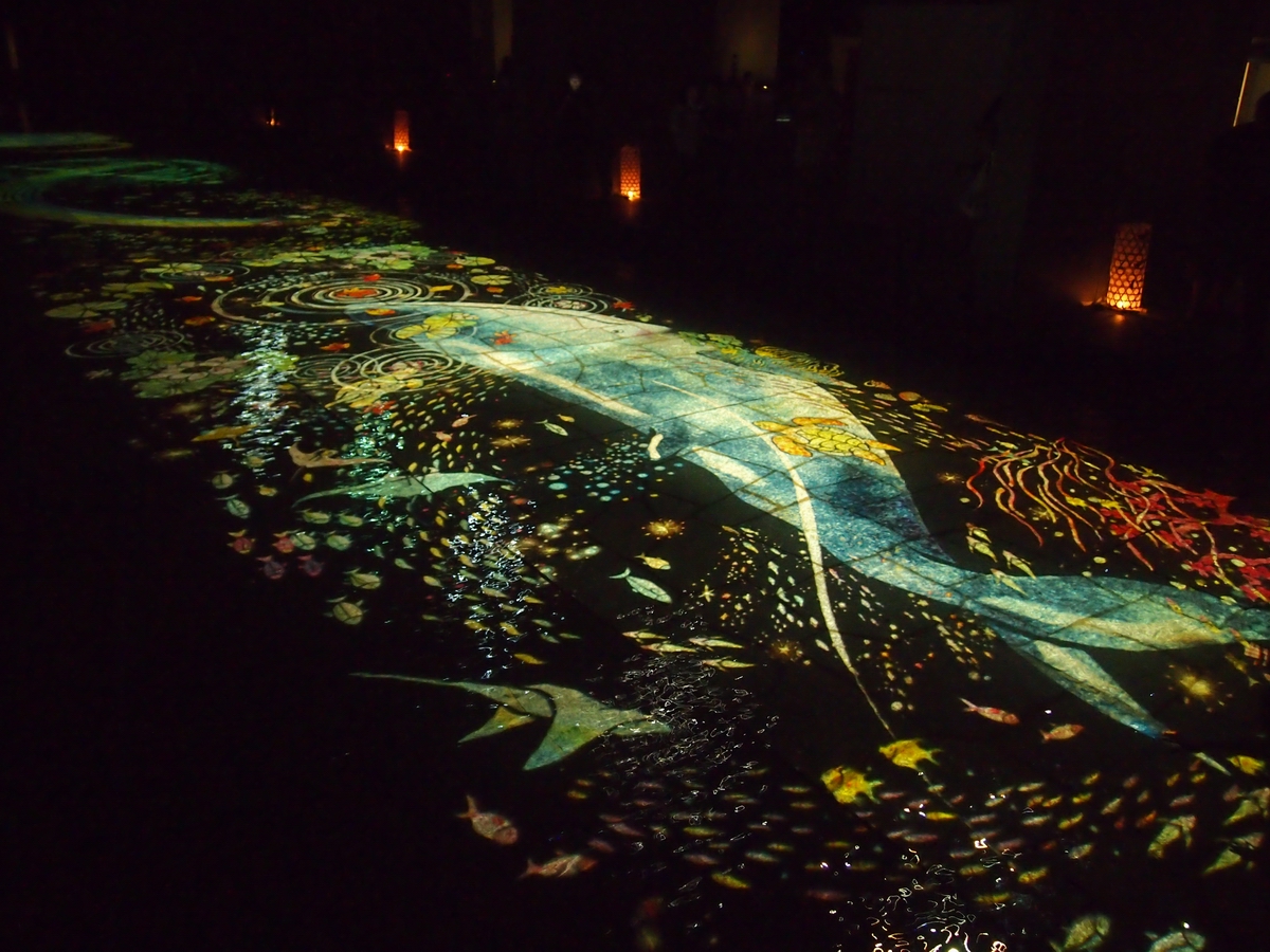 先ほどの水盤にプロジェクションマッピングをつかった見事なアートが現れました。