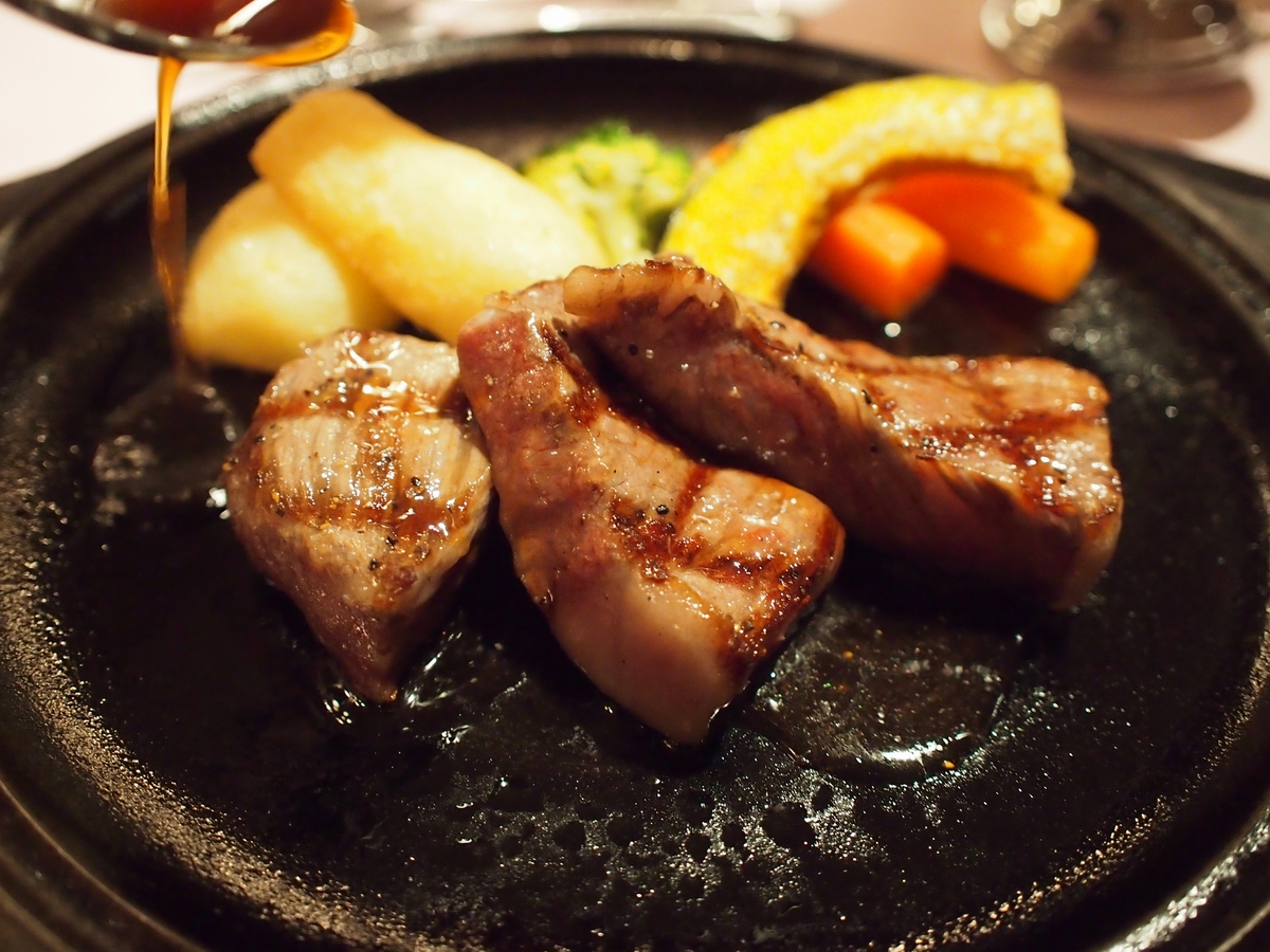 レアで焼いてもらったお肉はとってもやわらかくてジューシーでした。