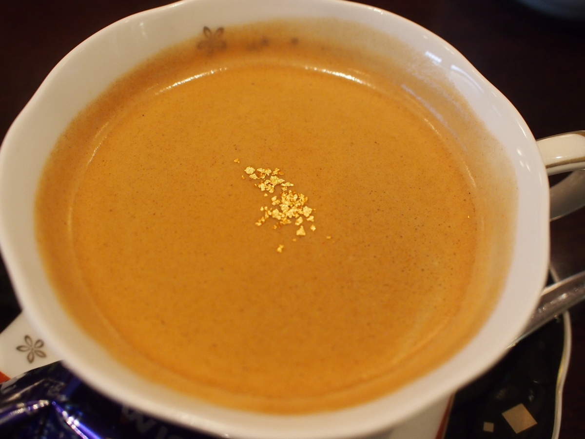 金箔入り珈琲で体を温めます。