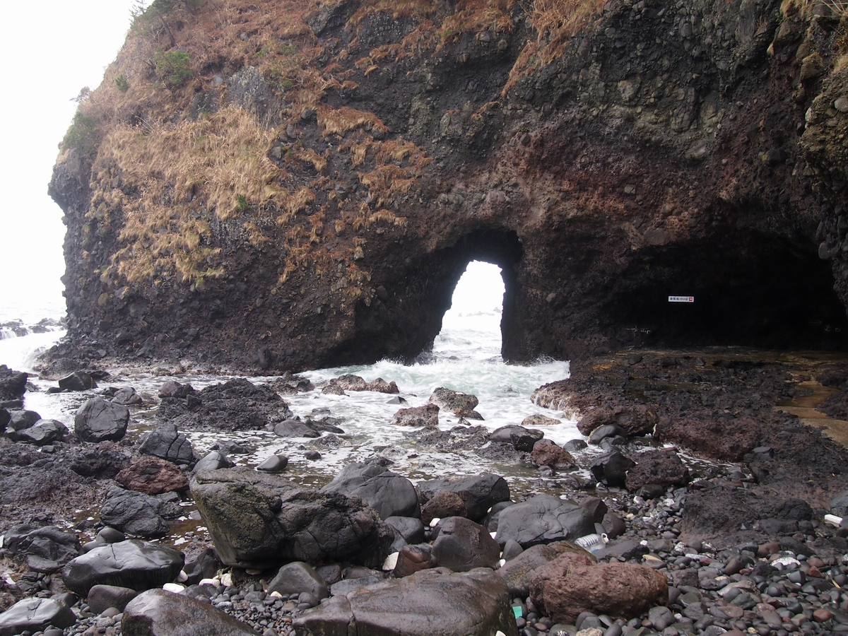 侵食で空いた穴。ここから見える夕日や朝日はさぞ幻想的なのでしょうね。