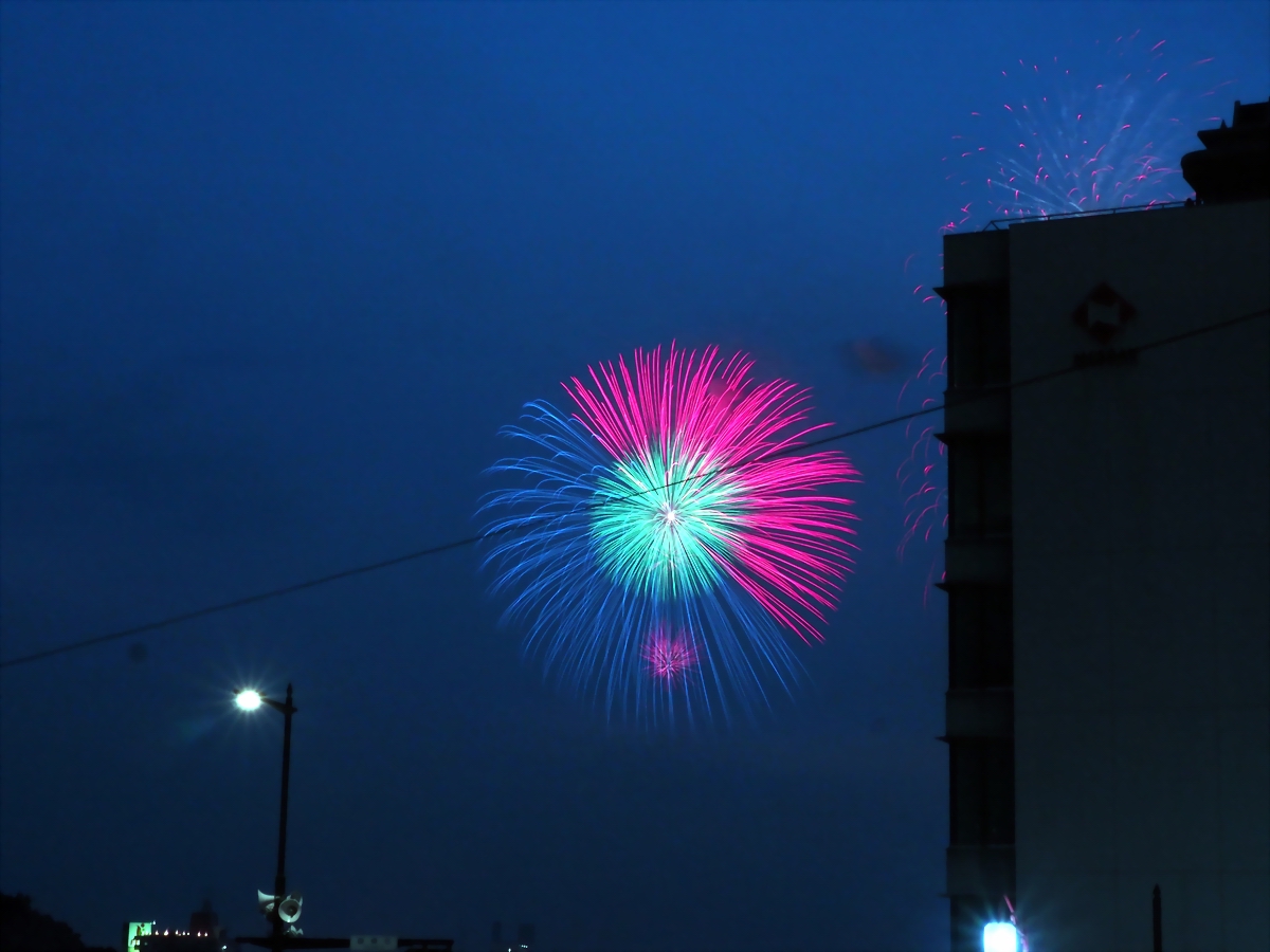 今年は特にポケモンのモンスターボールのようなハーフハーフの花火がありました。