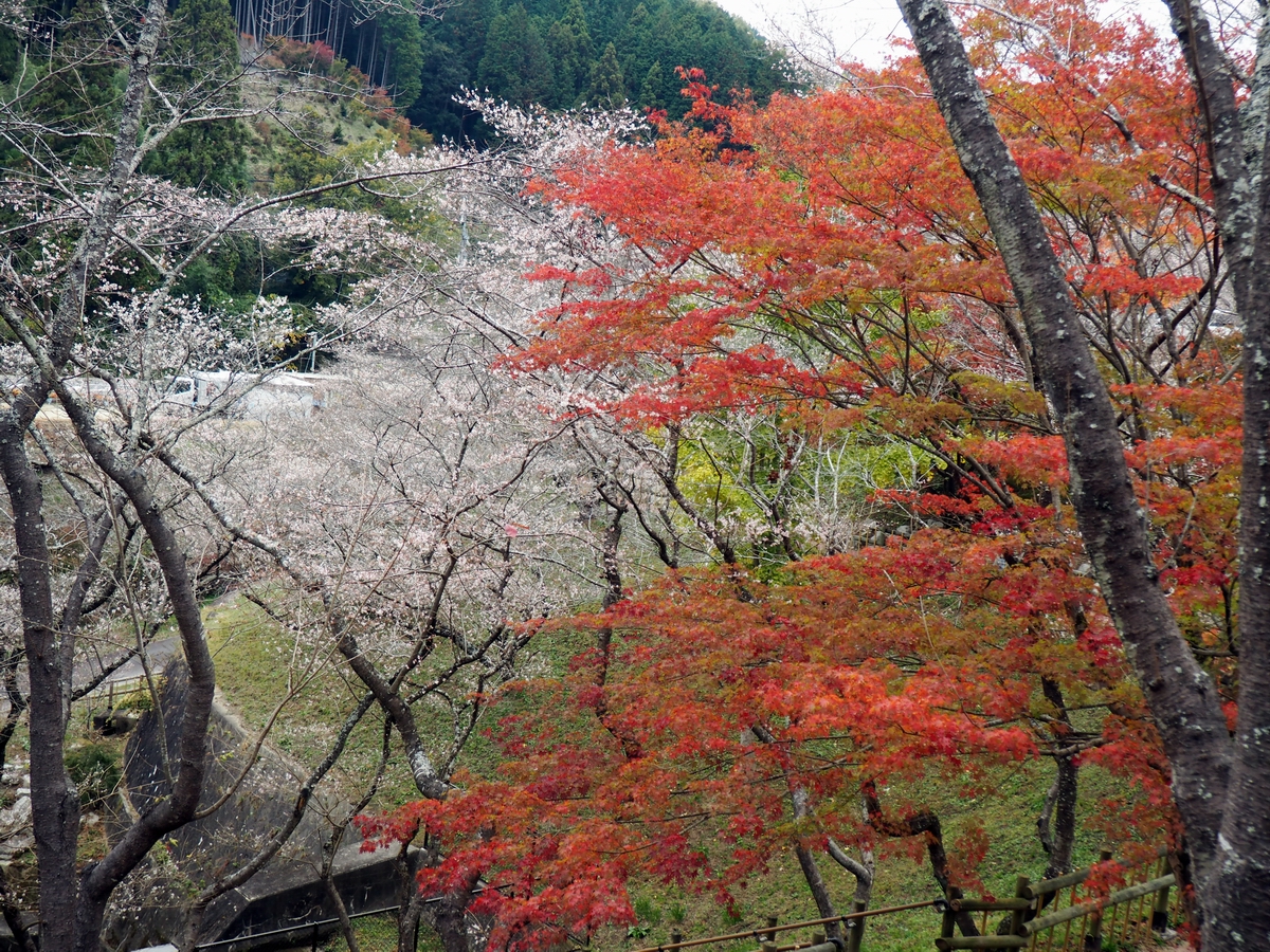 この時期に桜が見られるし、紅葉も一緒に見ることができます。