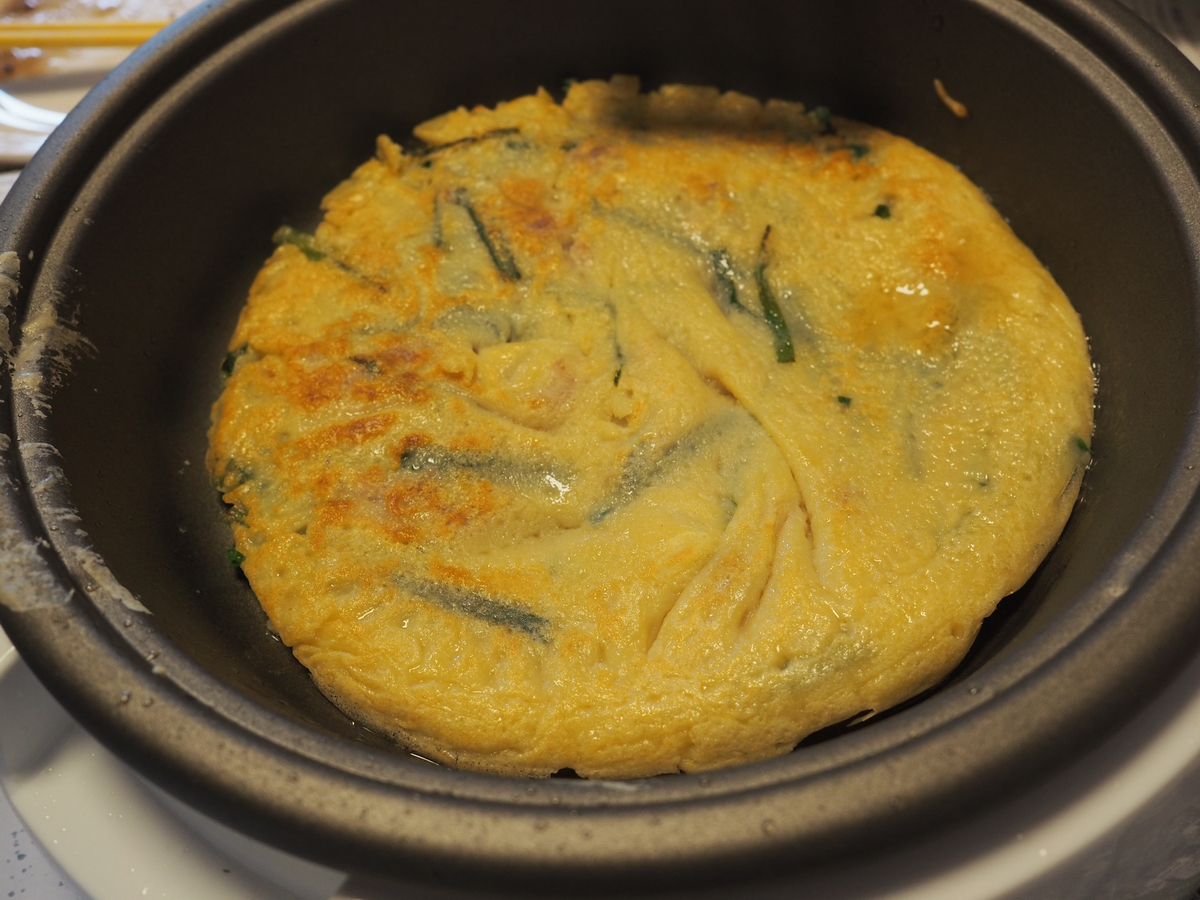 続いて、薄力粉大匙5杯、水大匙5杯、卵1個、ほんだし小匙1杯をまぜ、